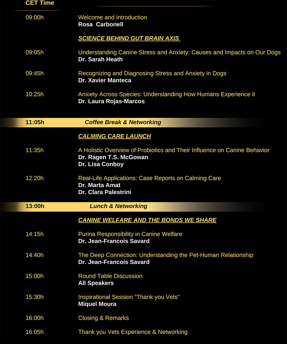 Concluding the day, we will host a dynamic round table discussion and an inspirational session dedicated to honoring our dedicated veterinary professionals. This symposium promises to be an enriching and interactive experience, fostering a deeper understanding of canine behavior and enhancing the bond between dogs and their owners